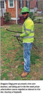 For now, Clegg works at Asplundh as a ground worker, dragging brush, running chainsaws and doing other miscellaneous jobs. “My goal is to save enough money to eventually start my own business,” he notes. “I’ll have to start from scratch, get myself a truck and go from there. I’d also like to help others learn the business someday.”